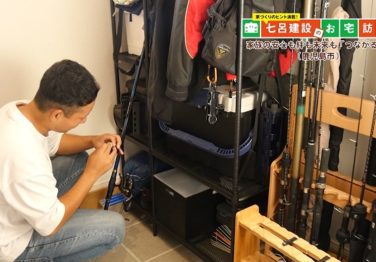 - 玄関の一角にご主人の趣味の釣り具を収納するスペースを確保