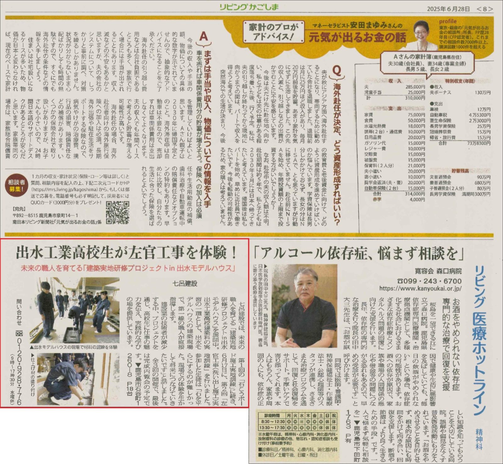 2025年6月28日(土)付のリビングかごしまに七呂建設の「建築実地研修in出水モデルハウス」について掲載されました。