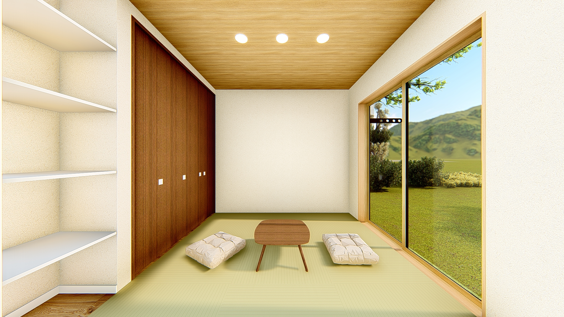リビングと一体に使えるフラットな和室は、押入れと可動棚付き。仕切って寝室としても使えるので、年利を重ねても1階だけで暮らしを完結することができます。