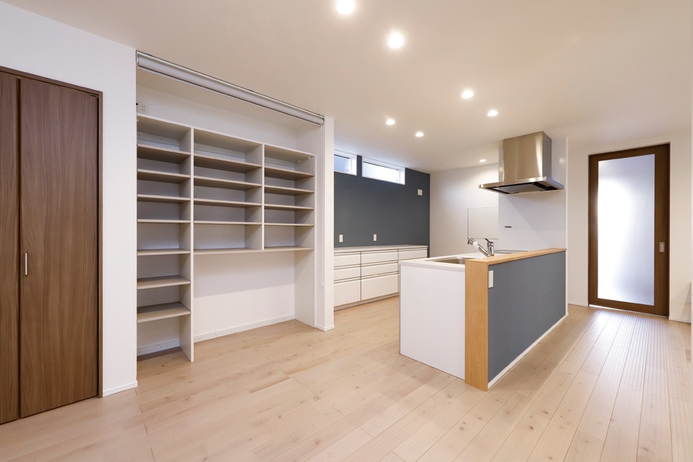 LDKから和室、タイルデッキまで、まんべんなく目が行き届く対面キッチン。横並びのダイニングで、食事の配膳や後片付けもよりスムーズになります。