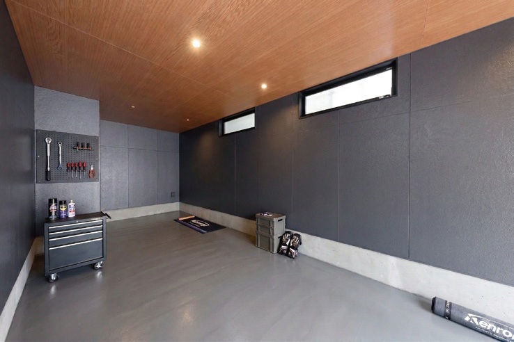 限られた街中の敷地で、2台を十列できるように22帖の奥行きを確保したインナーガレージ。玄関につながるドアがあり、雨の日も濡れずに室内と行き来できます。