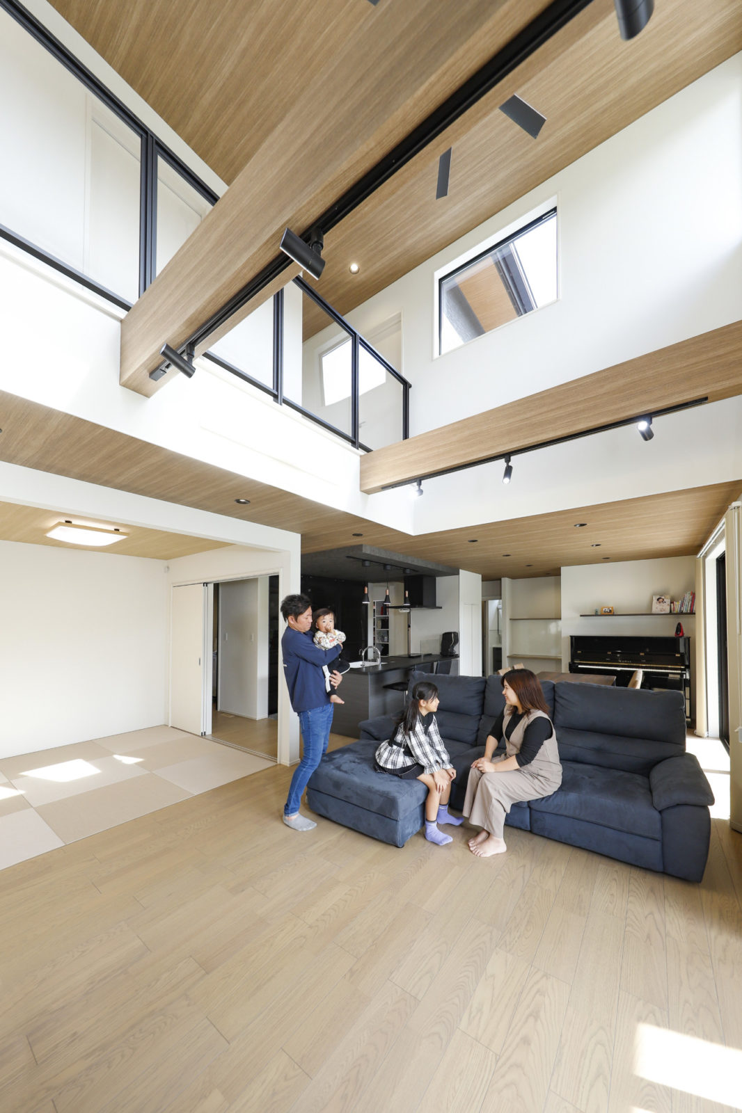 七呂建設呂の家事時間1/2動線をベースに、開放感のあるLDKや将来まで安心の1階完結型の間取りなど、K様ご家族が過ごしやすい間取りを提案しました。さらに、リビングから庭までの一体感も大きなポイント。住まいの内と外をシームレスにつなぎ、BBQやホームパーティーなど、これからの楽しみが広がるオーダーメード住宅を実現しています。