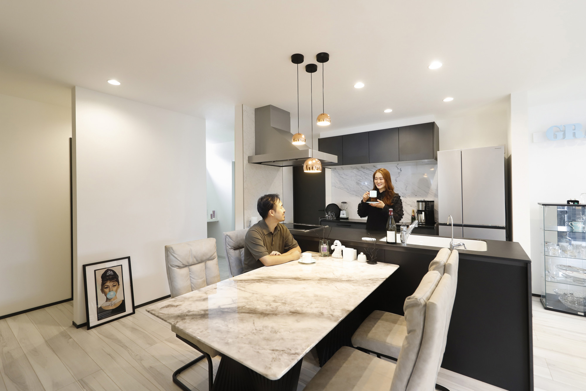 モノトーンを基調としたインテリアで生活感を払拭。素材選びや配色については、弊社のコーディネーターと相談しながら決めていった。