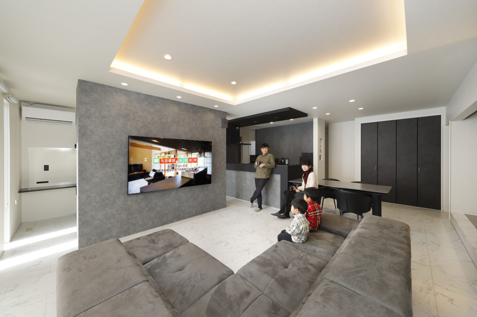 白・黒・グレーでまとめたホテルライクな空間が、日常に上質さと心地よさをプラス。生活感を見せない収納計画で、”楽しくキレイを保てる”工夫が詰まっています。さらに「洗う・干す・しまう・着る」が一直線で完結する、家事2分の1動線を寝室までつなげて快適な生活を実現。美しさと暮らしやすさ、どたらもかなえる住まいです。